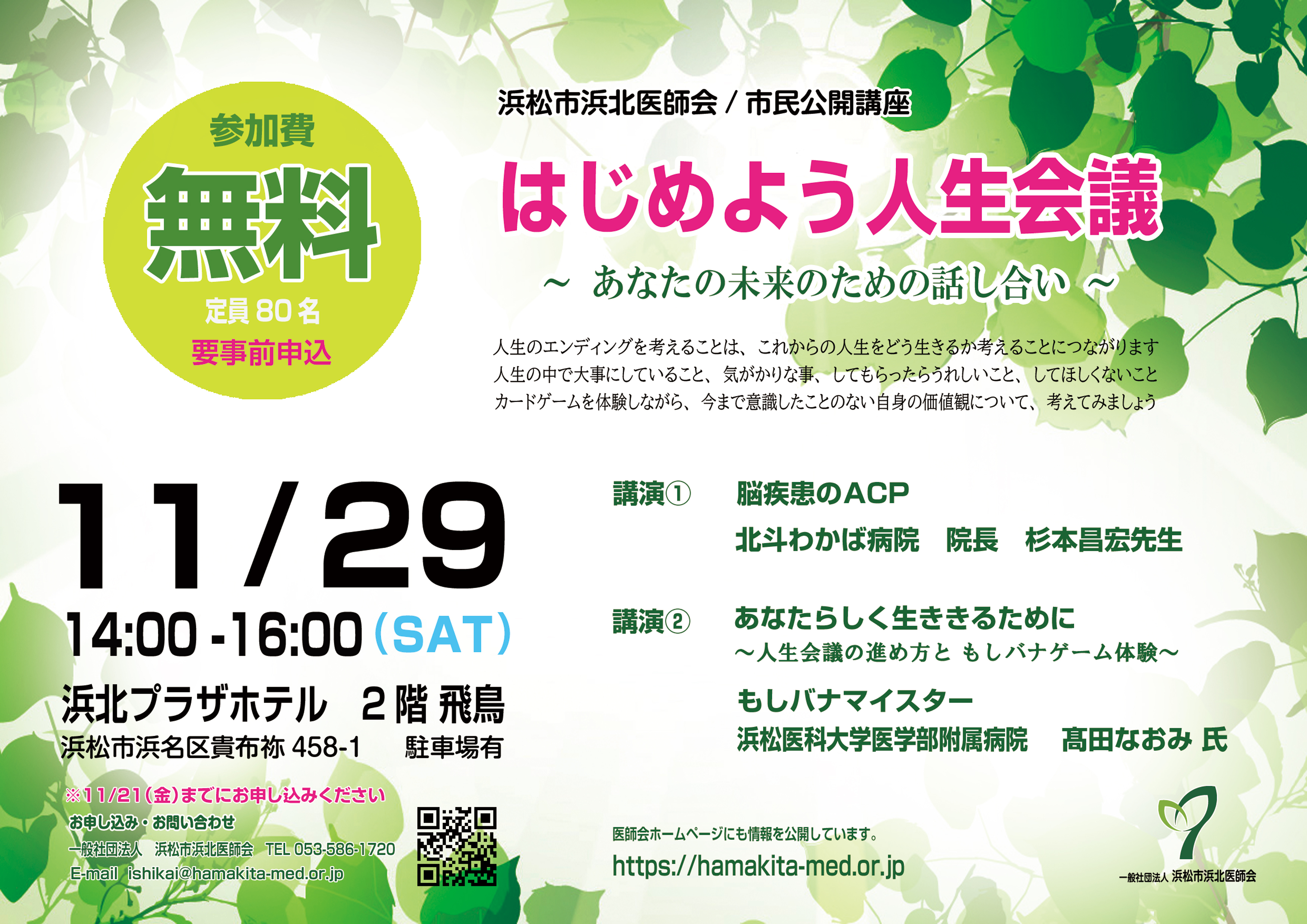 市民公開講座「はじめよう人生会議 ~あなたの未来のための話し合い~」